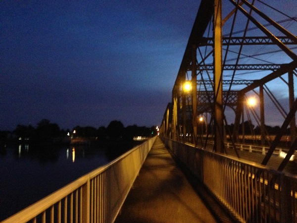 夕日に照らされてオレンジ色に染まった町を駅方面へと歩く。