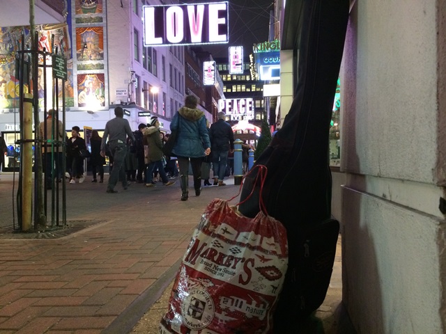 どこを歩いてもたくさんの人が歩いているロンドンだが歌う場所となると悩む…。