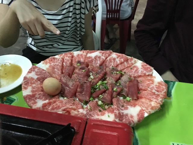 やっとこさカンちゃんがインドから戻ってきたのでユカリちゃん、シンちゃん、旅丸のショーくん、ラトビア人のアルちゃんと一緒にレバ刺し。