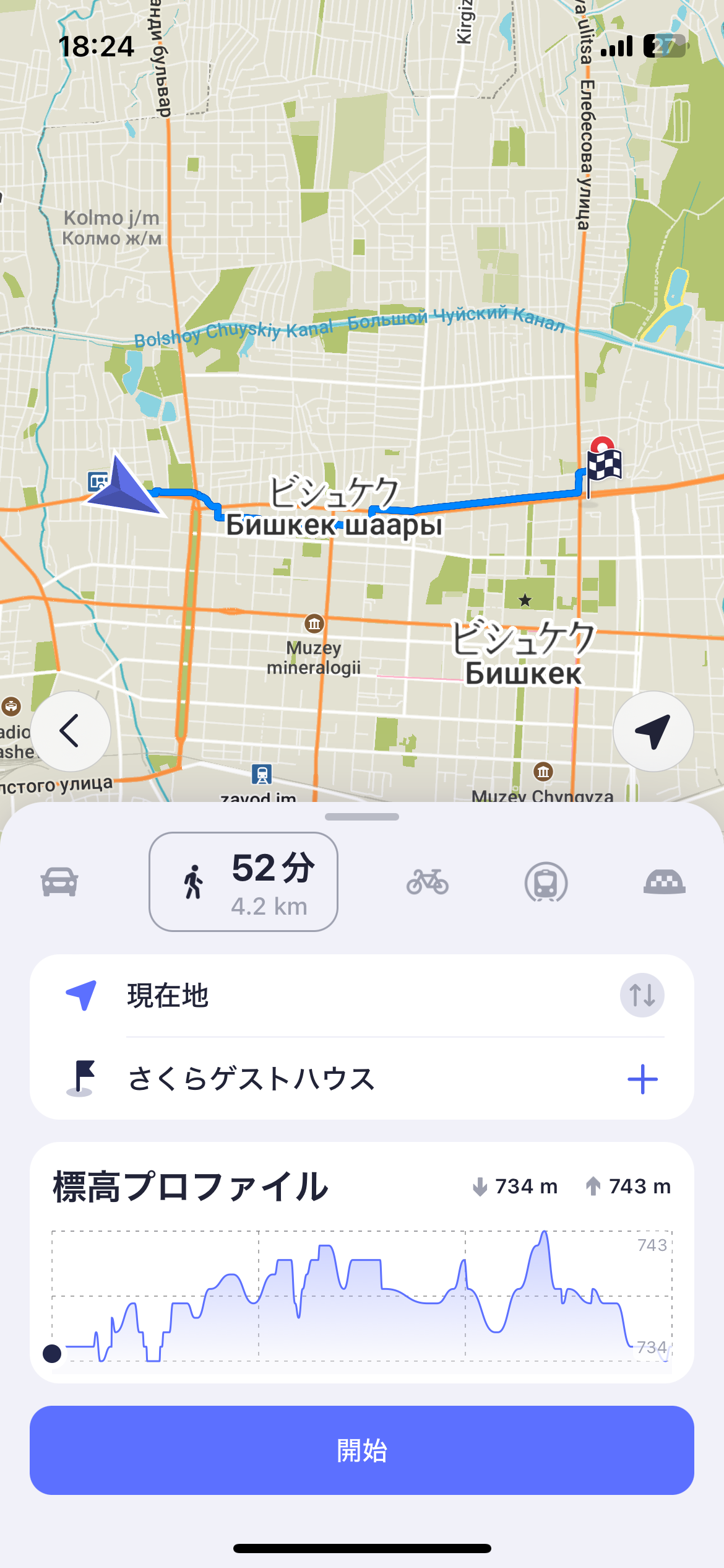 さて、ここから今日の宿『さくらゲストハウス』へはほぼ直線で約4.2km。
