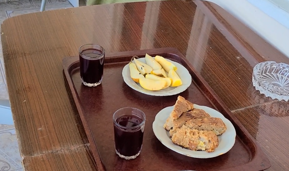 宿のオーナーの婆さんは英語は話せないがとにかく愛嬌がある人で、チェックインした後に自家製?のワインと果物、ケーキを差し入れてくれた!!