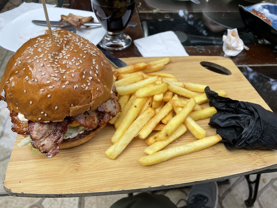 250ラリ(1500円ぐらい)のバーガー。出てくるのに40分かかった…クソ美味い。