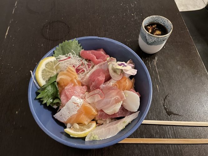 晩飯は海鮮丼をいただいた。神か?