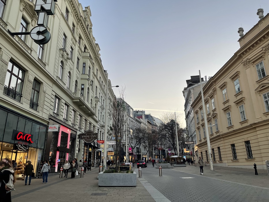 赤ラインの電車で昨日のカールス教会の近くの駅まで行き、そこからは徒歩で散歩がてら向かってみる。