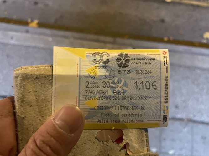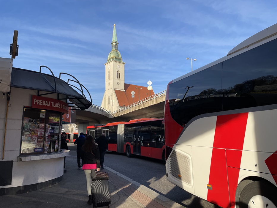 チェックアウト後に1時間だけ共有スペースで滞在させてもらい13:10のバスでスロバキアの首都ブラチスラバへ。