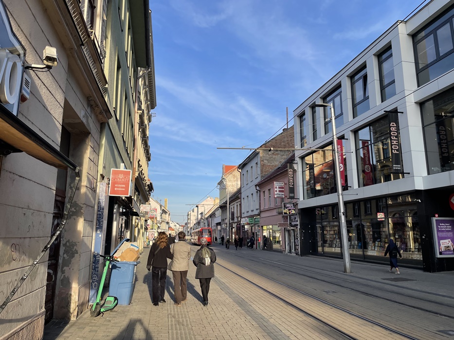 人は多くないが静かで良い感じの短い通りを抜けると宿があるトラム沿いのメインストリート。
