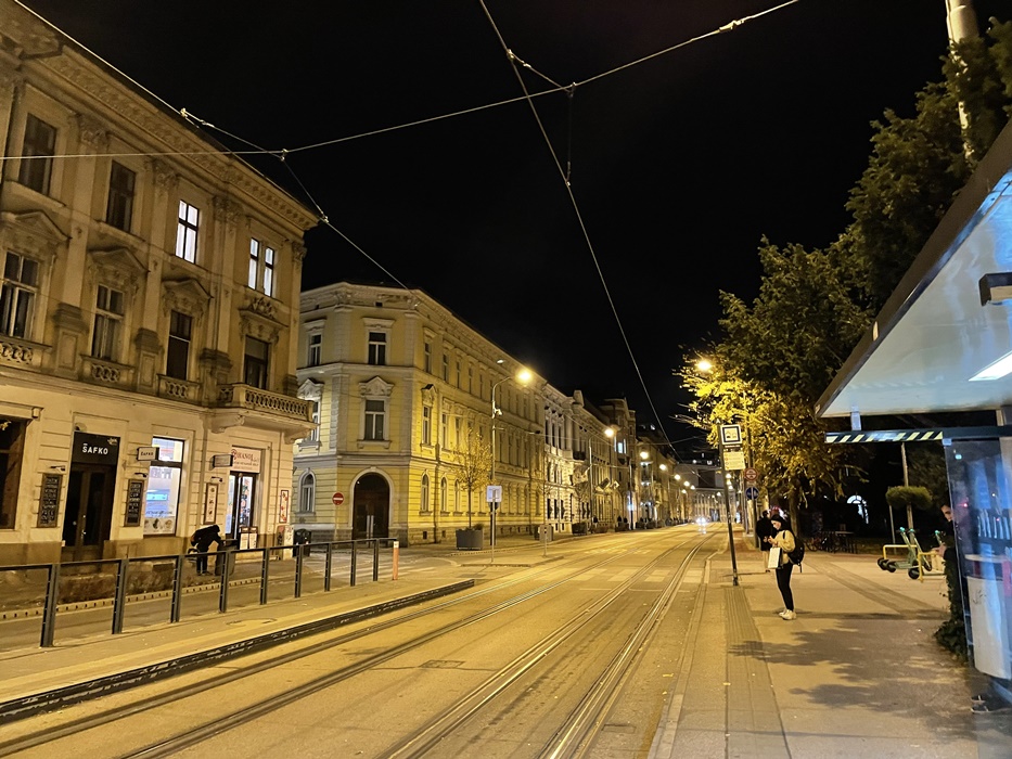 トラム待ち。19時半。