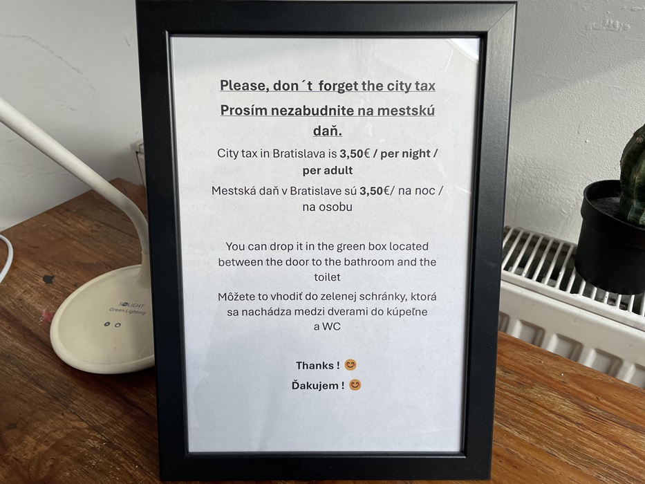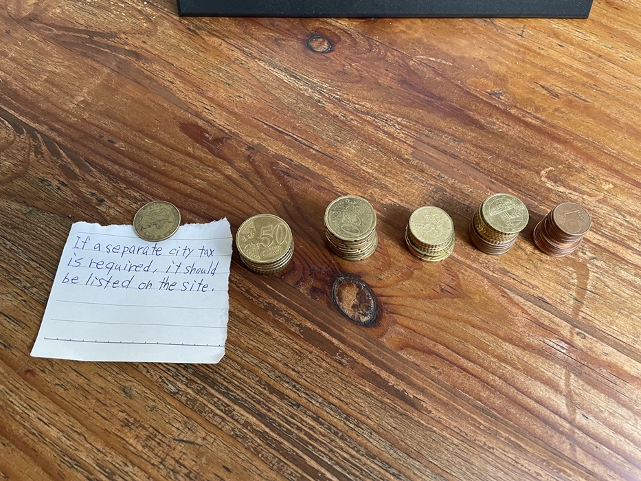 市税が一日3.5ユーロかかるから緑の箱に入れておいてね。