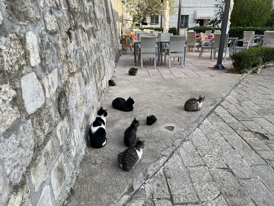 コトルもトルコのイスタンブールと同じようにキャットタウンと呼ばれるほど猫が多く、そこかしこに異常に人間慣れした猫がたたずんでいてカワイイ。