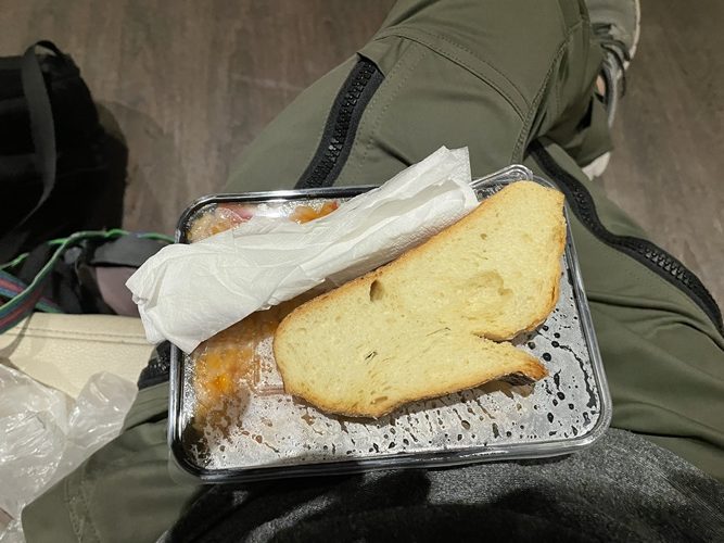先ほど歌っている最中に女の人が差し入れをくれたので持って帰って食べる。