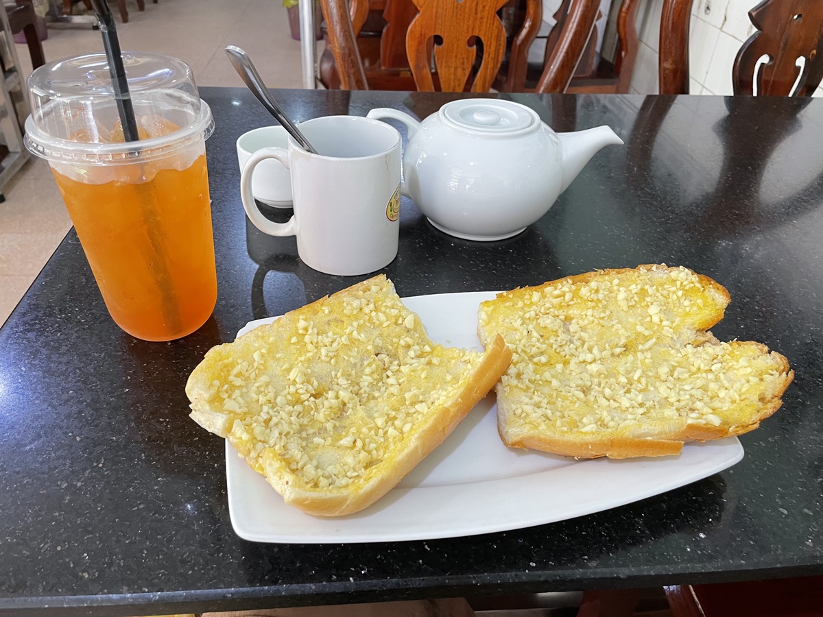 注文したガーリックトーストが人生で食べたガーリックトーストでぶっちぎりでたくさんのニンニクが入っていてビビった…