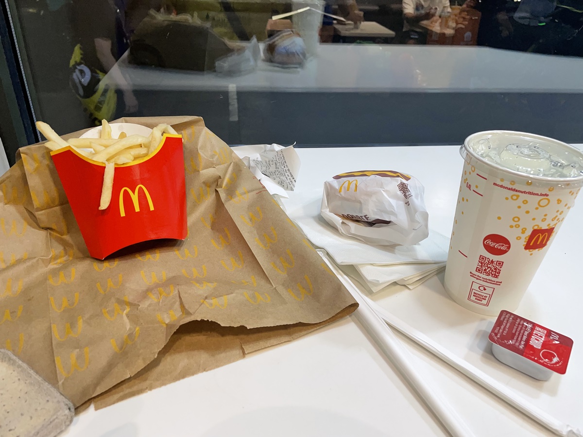 11時過ぎに戻ってくると当然全員就寝モード、起こさないように静かに荷物を置きこっそりマクドへ向かう。