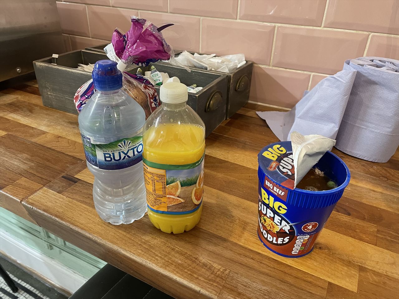 お湯を入れ過ぎてめちゃくちゃ味が薄くなったヌードルと絶望的に不味いベーグル。オーストラリアの頃と変わってへんがな…
