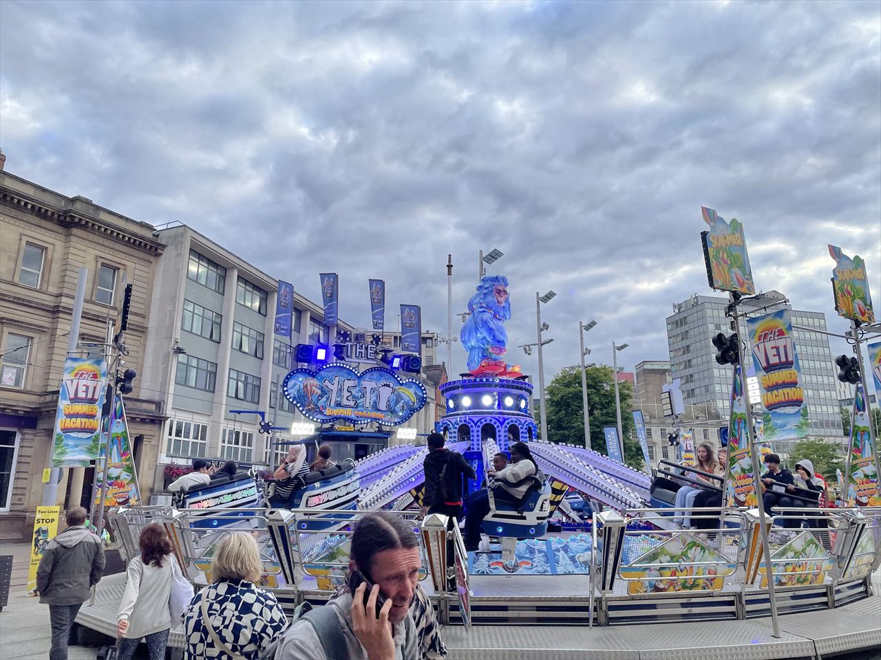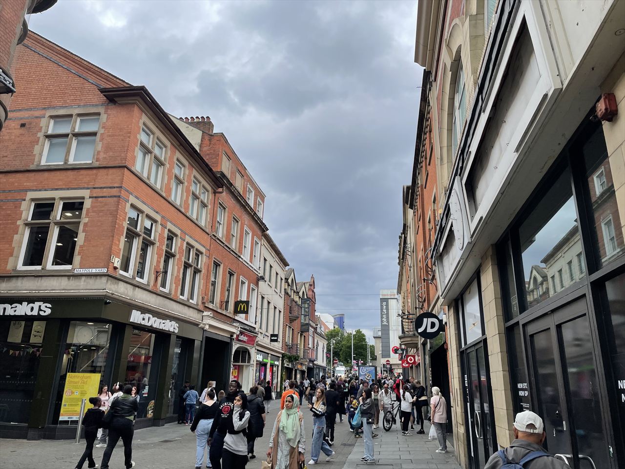 昨日のウォルバーハンプトンのバスキングスポットがあった通りに人だけ大量に足したようなハイストリートと呼ばれるこのホコ天に、先ほどの遊園地みたいな場所へ続くロングロウという広い道もありどちらもバスキングに持って来いな感じ。