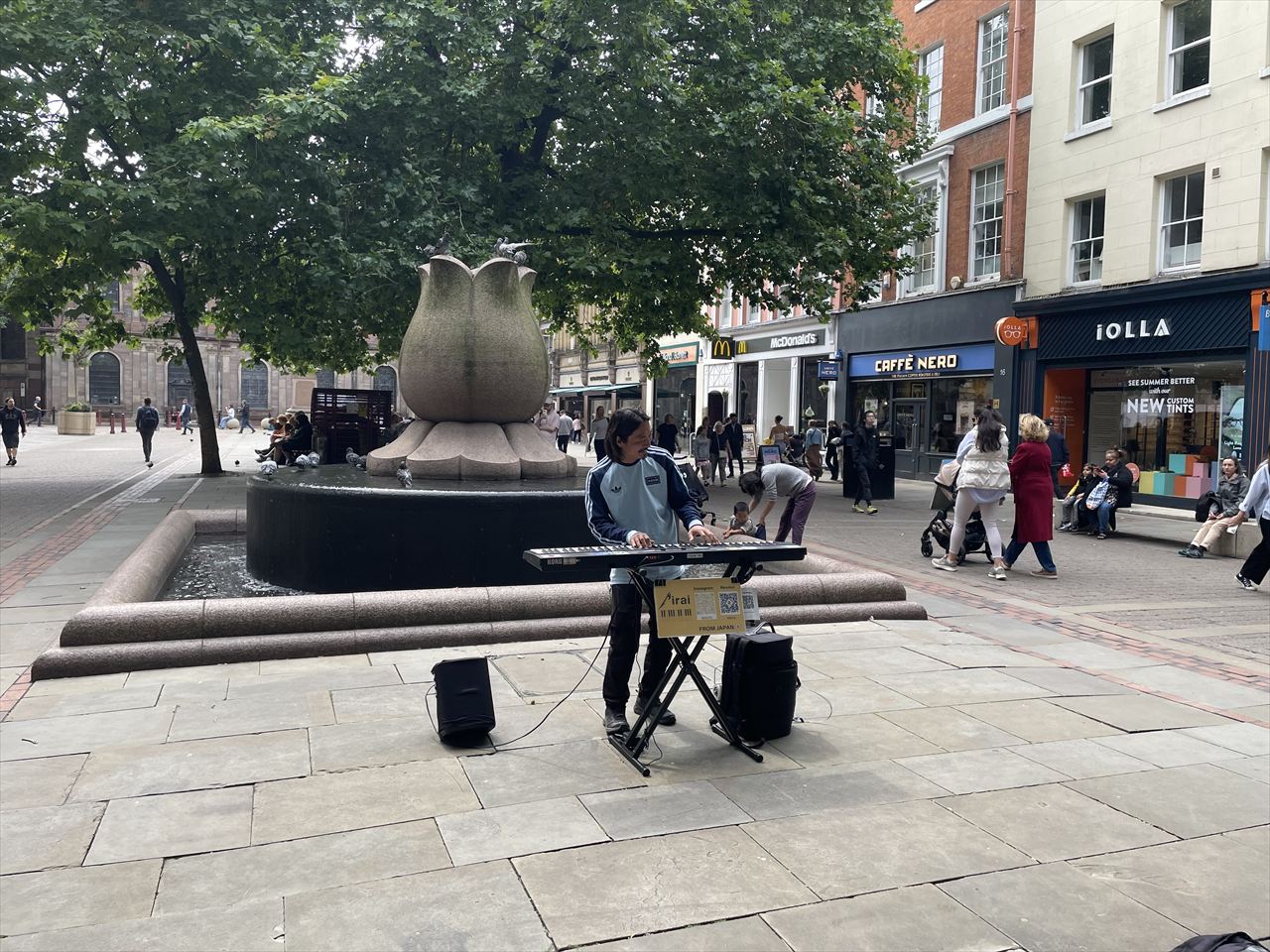 バスカーの中でもかなり少数なピアノ系で、以前はバックパッカーとして50ヶ国目ほど周り3年前からイギリス、アイルランドを中心にこのスタイルの旅をしているのだそう。