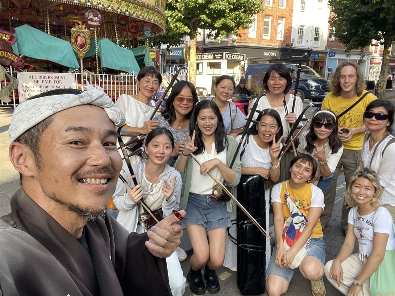するとそのタイミングで台湾から来られた二胡の演奏グループの方に一緒に演奏しようと言われたため、彼女たちのステキな二胡の演奏に合わせてギターと歌で参加させてもらう。