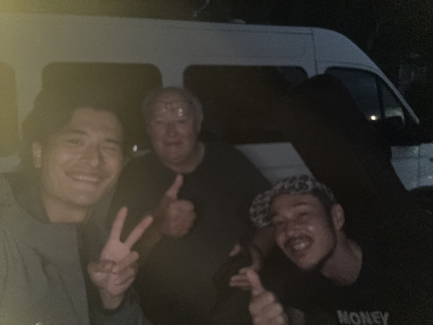 彼は今日はテント泊らしく、郊外のスポットに向かうようなので駐車場まで見送りに行くと、アルマくんのバイクの横に停めてあったキャンピングカーから恰幅の良いオッサンが出て来た。