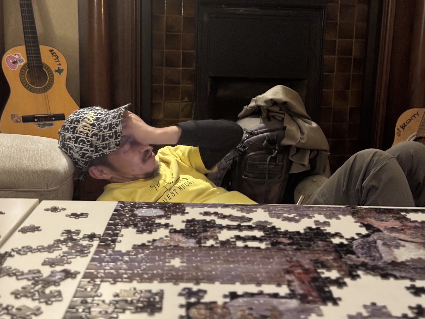 もはや中毒と化したジグソーパズルにみんなで没頭し、7割ぐらい仕上げたところで力尽きてしまい結局完成させずに明日出発する事になる…