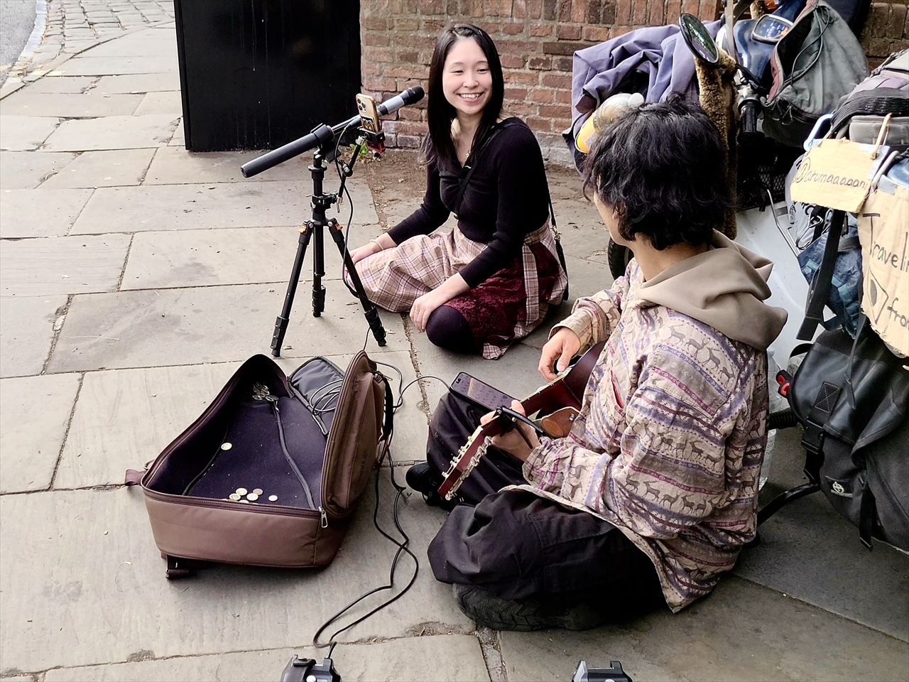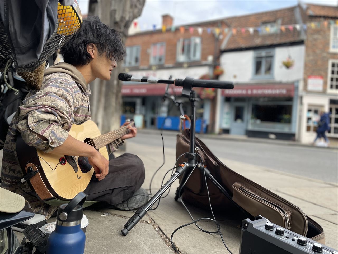 1時間半ほど歌って終了し、アルマくんのバスキングを見物に。
