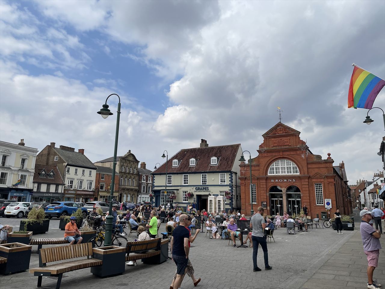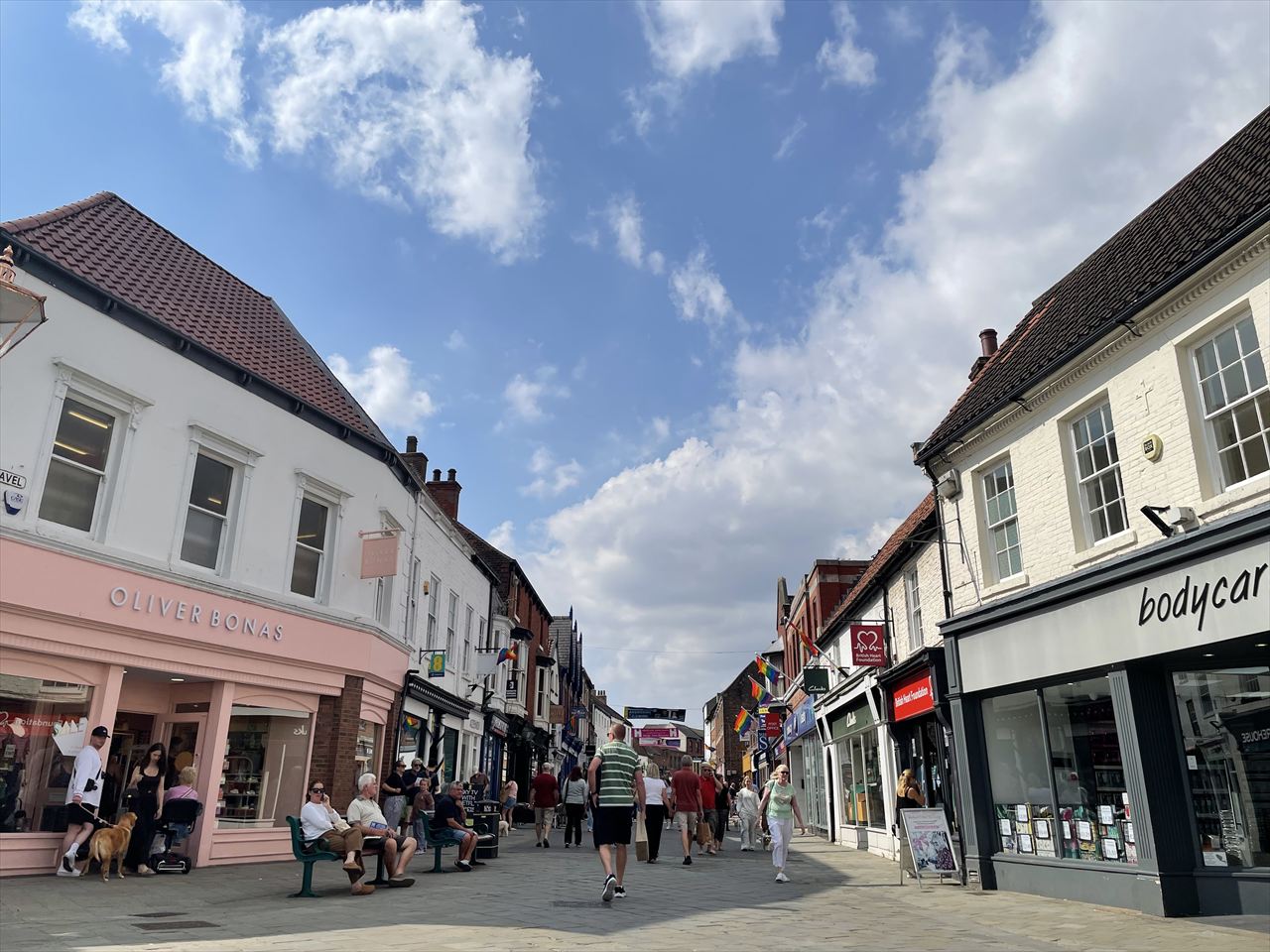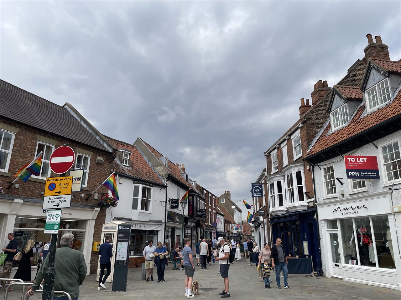 高い建物は駅付近にあった大聖堂の他は全くなく、ヨークのホコ天のような静かな雰囲気だがたくさんの人が歩いており活気付いている。