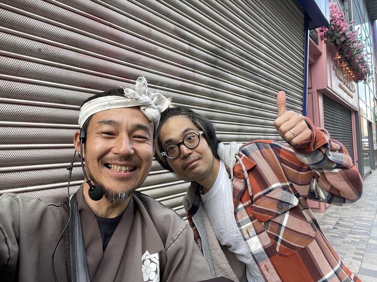 誰かが来たら交代しようと再度歌い始めると、ちょうど1時間で別のバスカーが現れたため交代する。