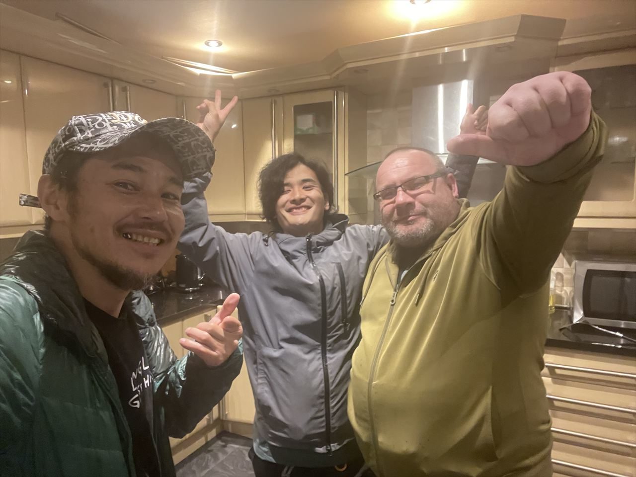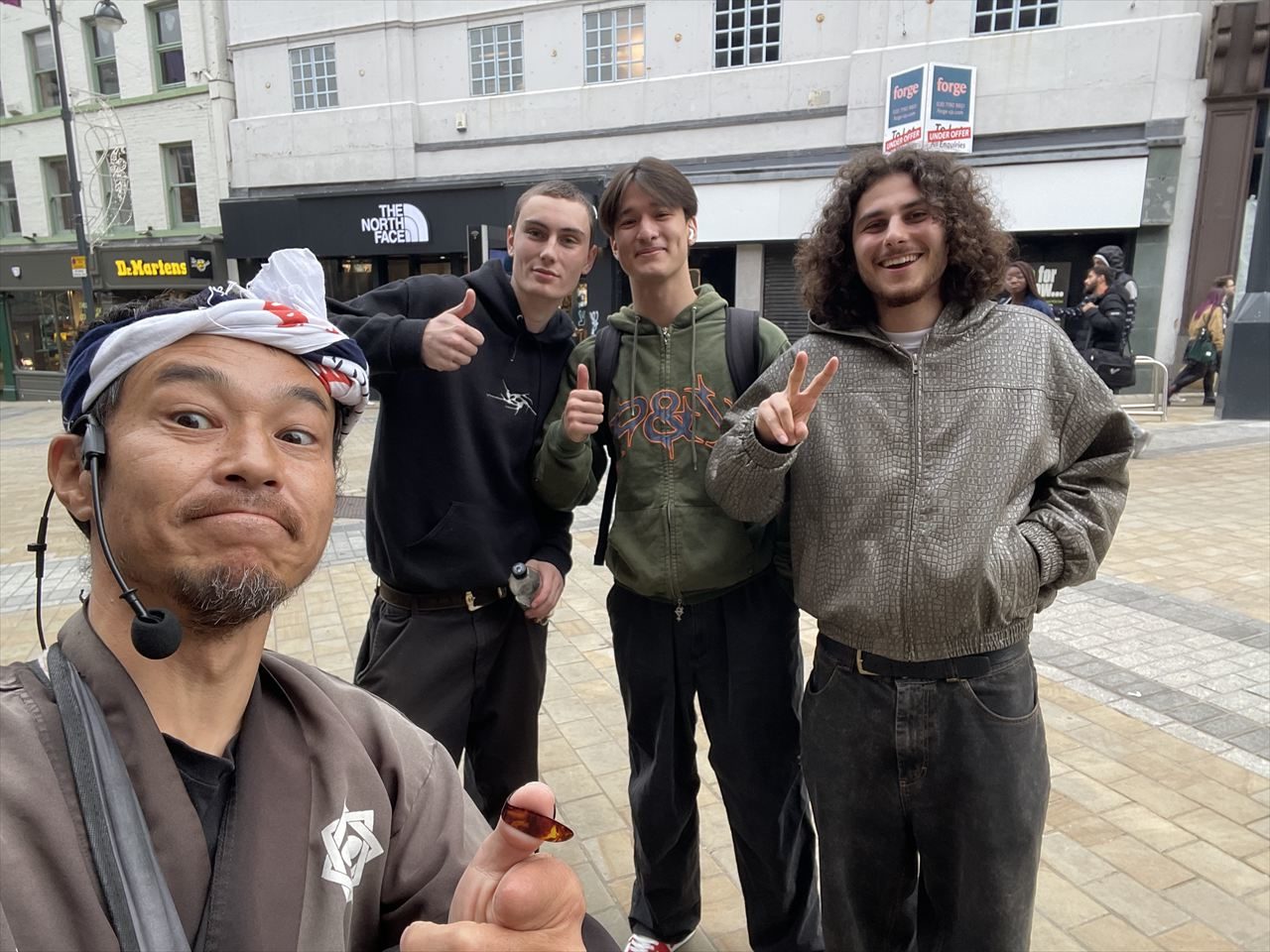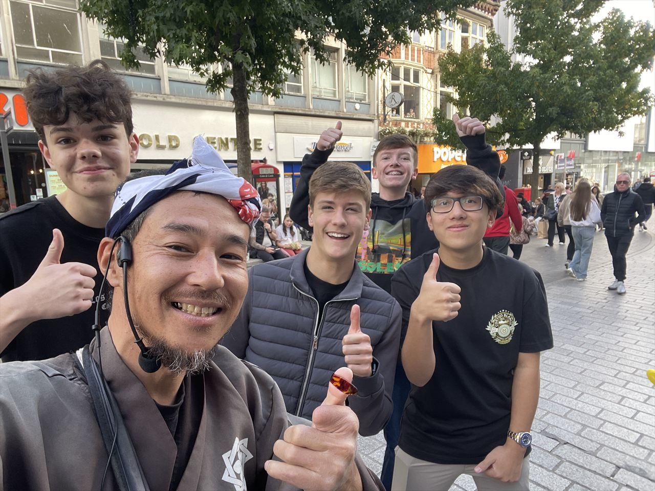 真ん中の若者は日本とイギリスのハーフ。