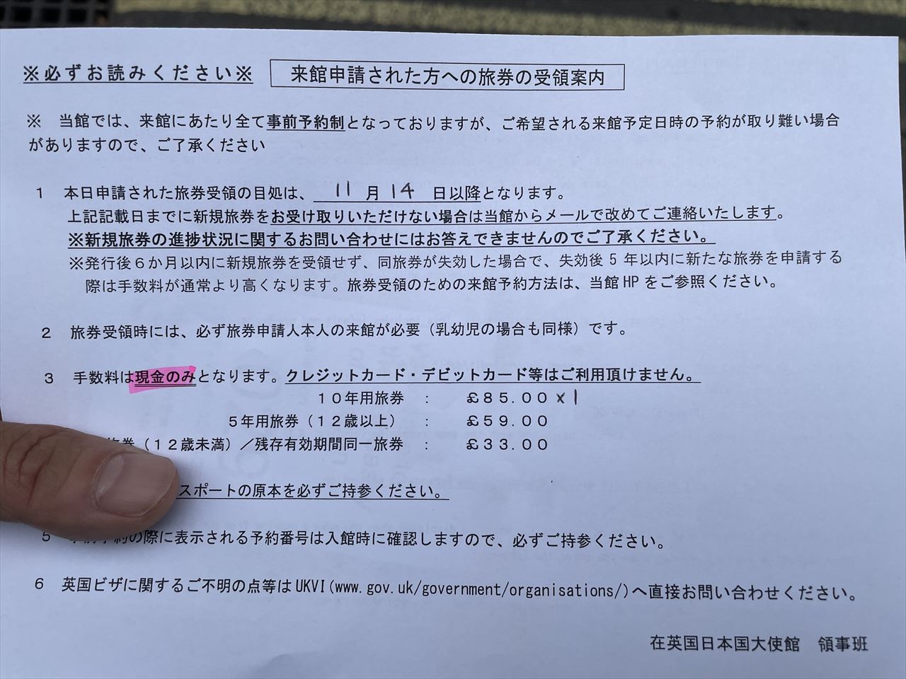大使館へ戻って写真を渡し申請完了。