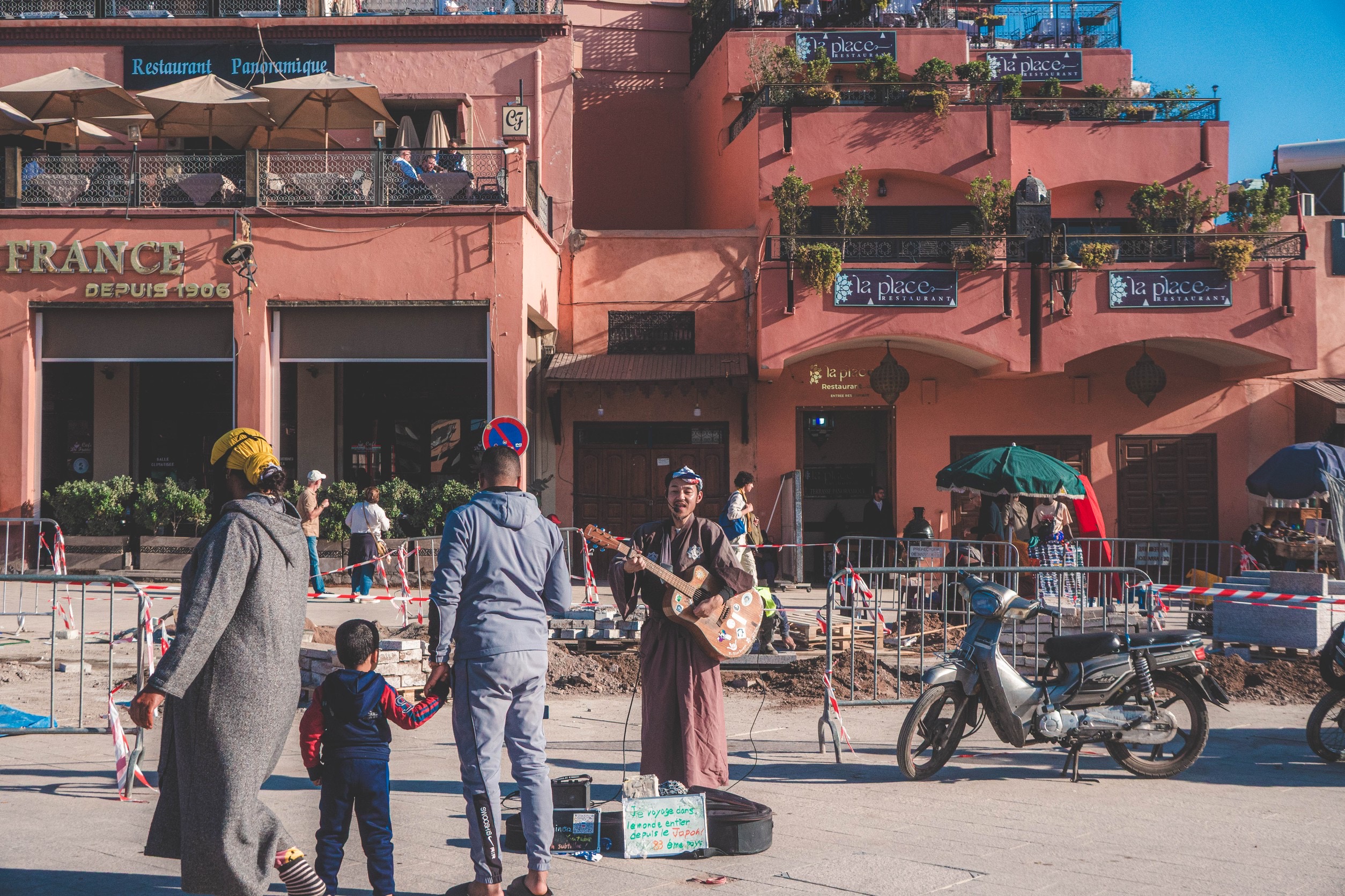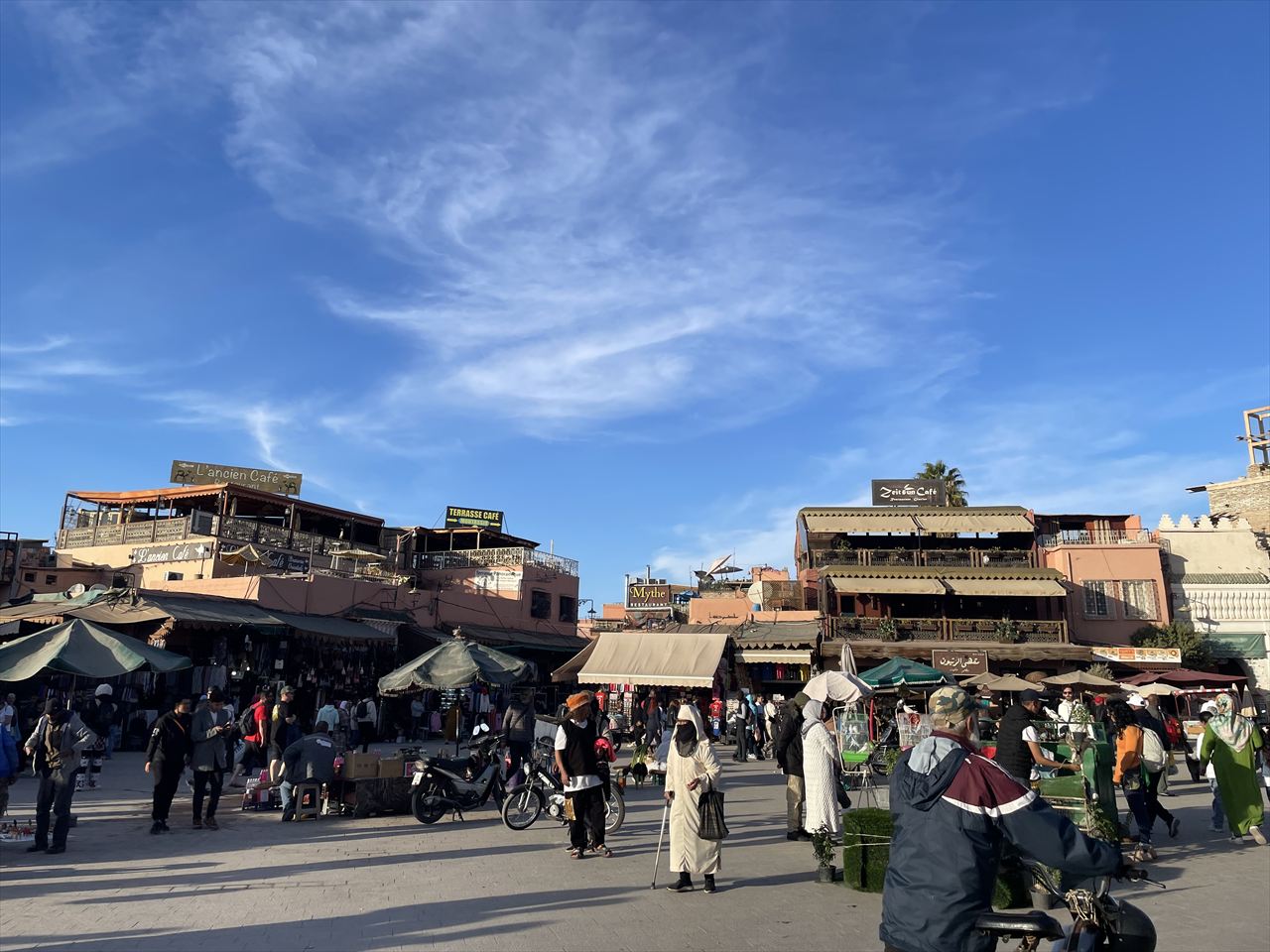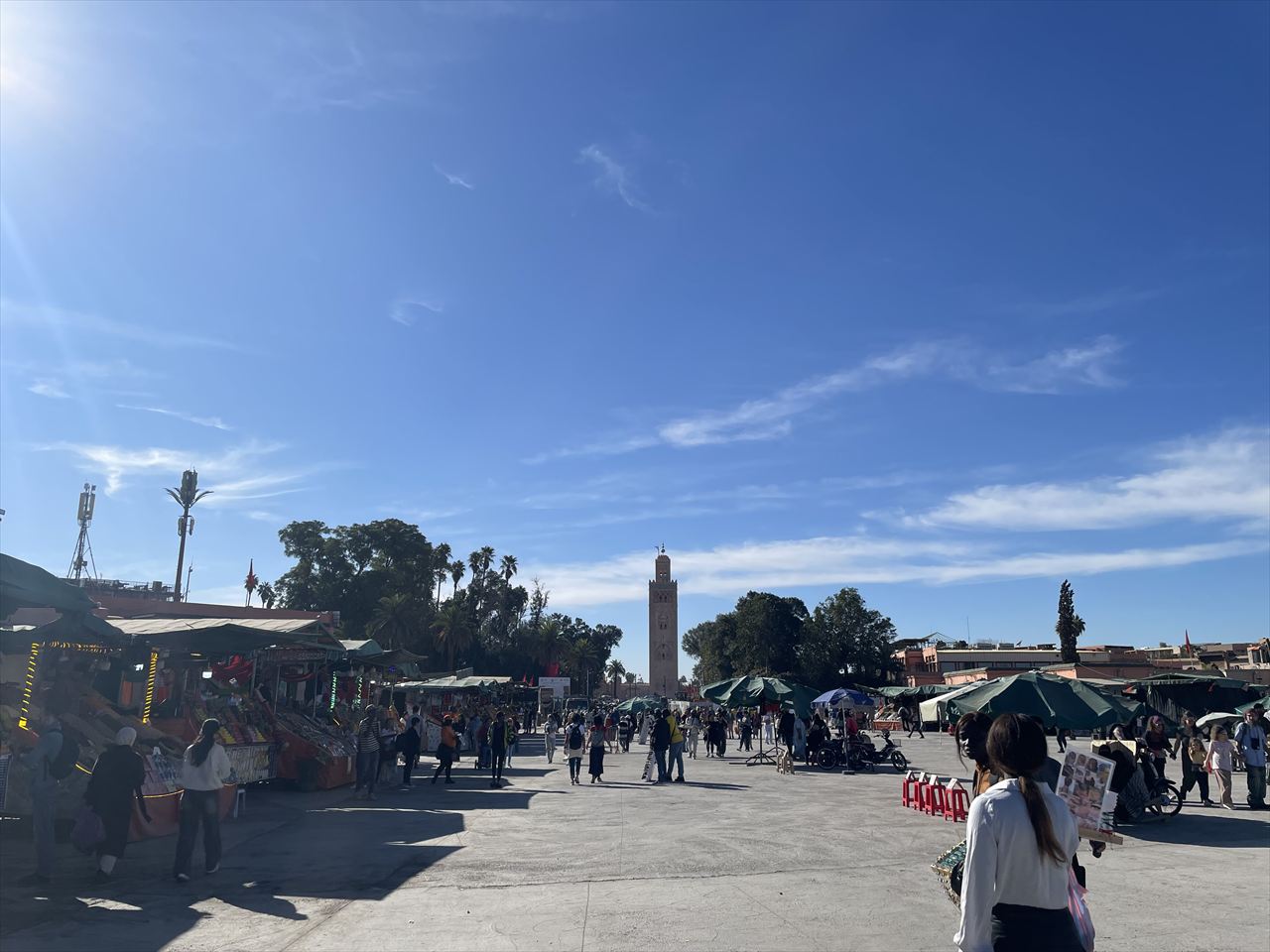 中心地のフナ広場(正式名称はジャマ・エル・フナ広場)までは約3.5kmとちょっとめんどい距離だがその間にSIMカード探したりしてたらすぐ着くやろ。