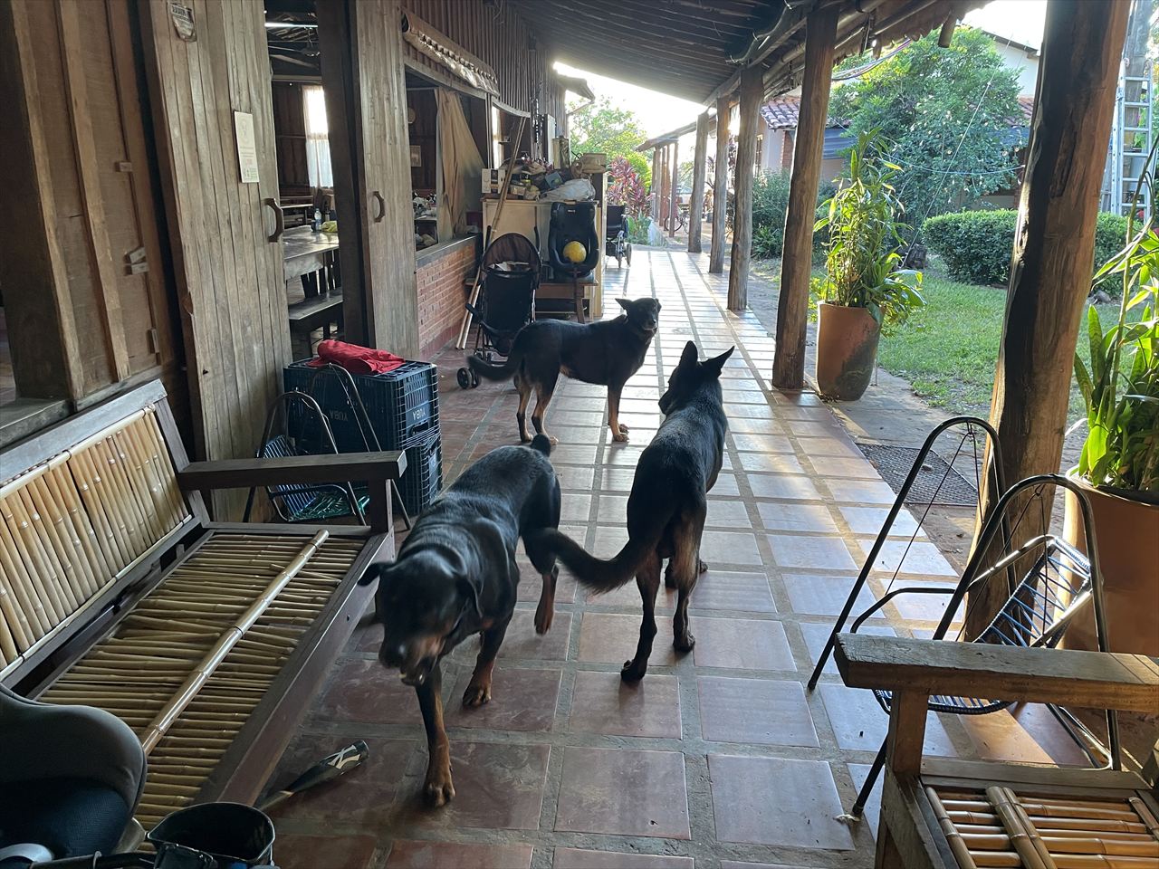 5匹いる犬。めちゃくちゃ人懐っこくてカワイイ。