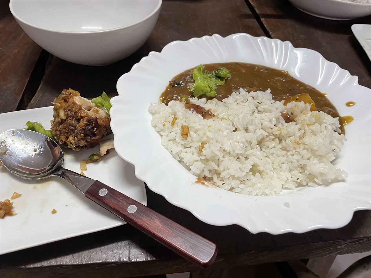 この日は油淋鶏とカレー。腰抜けるぐらい美味い。