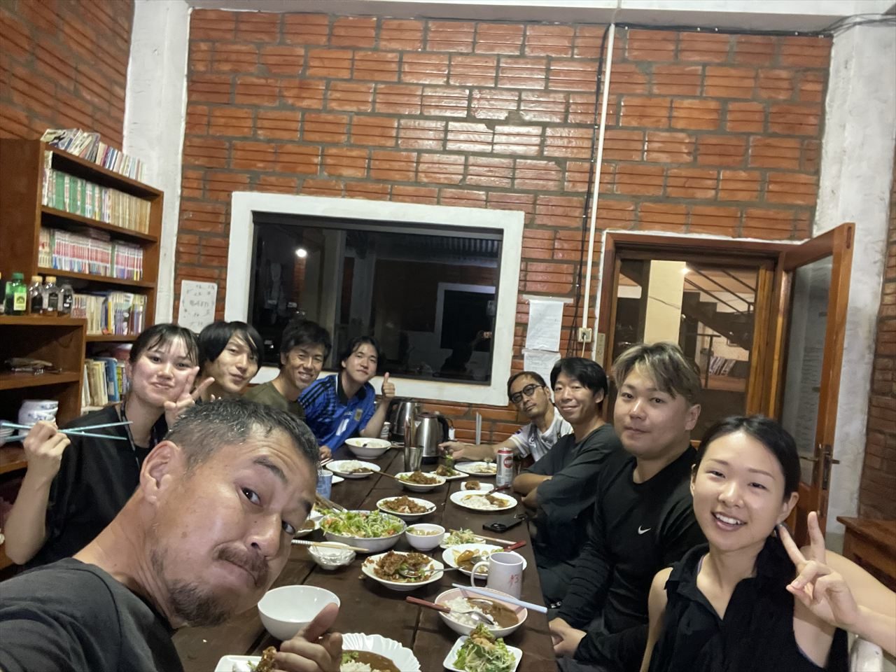 夕方にまた一人大学生の男の子がやって来て晩の食卓は大人数で囲む。