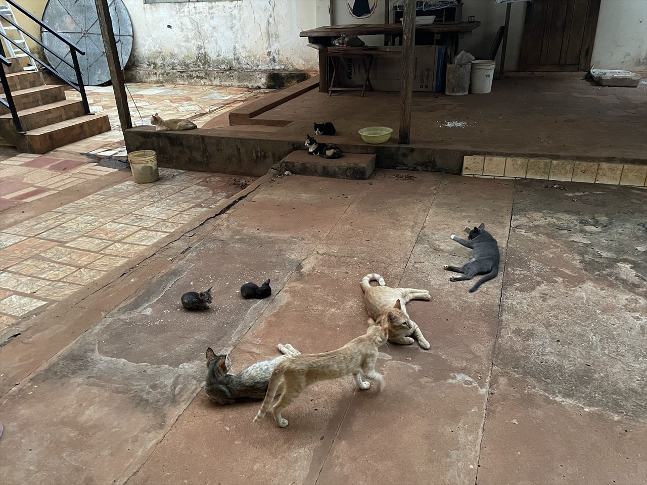 敷地内には犬と猫がそれぞれ8匹ぐらいいてとても人懐っこい。