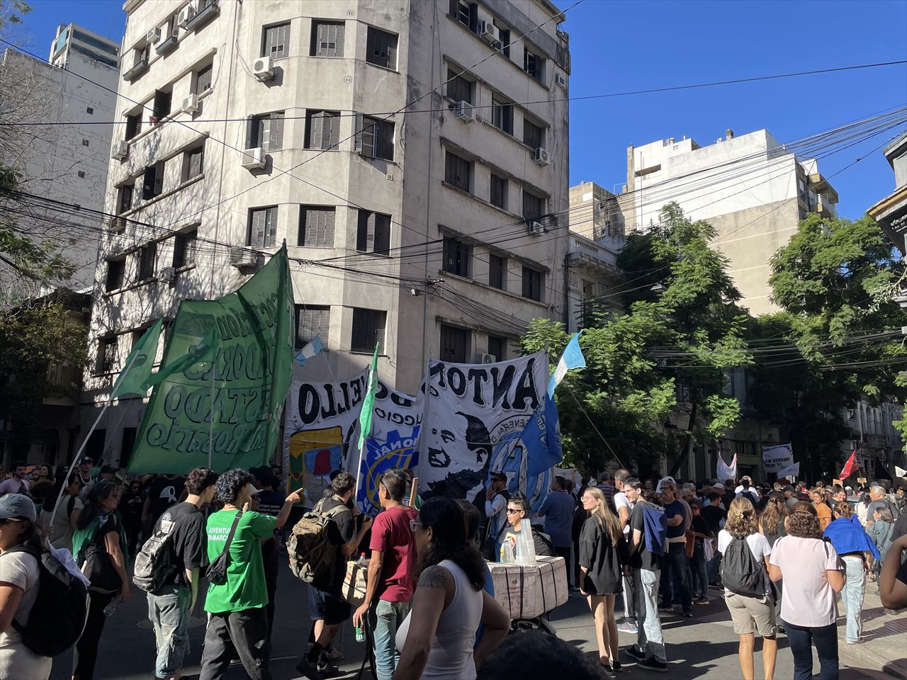 すると宿を出た目の前の通りでデモが開催されていた。